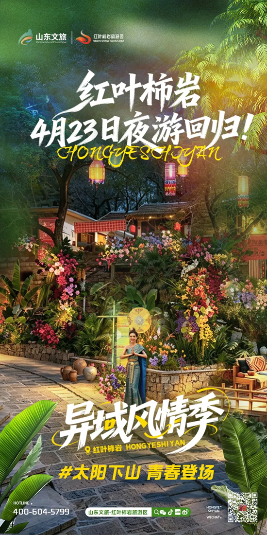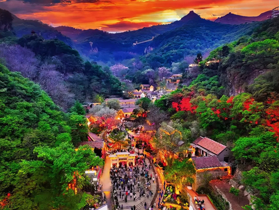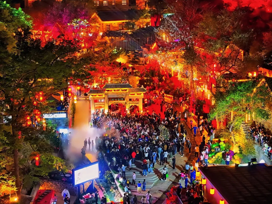 当日落沉入山脊,红叶柿岩的夜,亮了