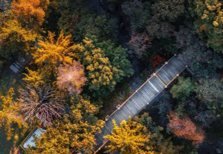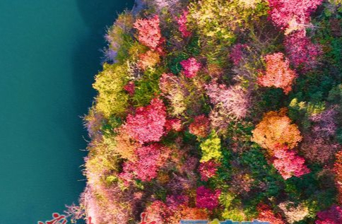 济南九如山秋日画卷,泉润红枫色彩斑斓