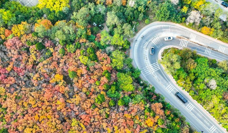 济南莱芜红石公园秋意浓 红石秋叶绘就多彩画卷
