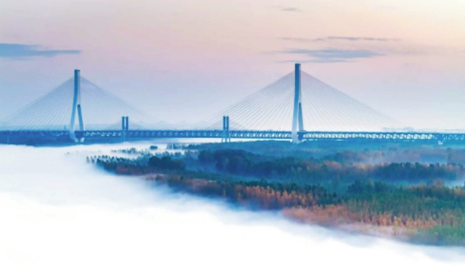 济南气温回暖 黄河岸畔现“金色巨龙”奇观