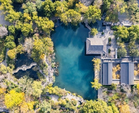初冬时节,济南五龙潭公园色彩斑斓景致如画