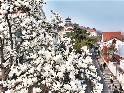 青岛:一树玉兰 满城春色