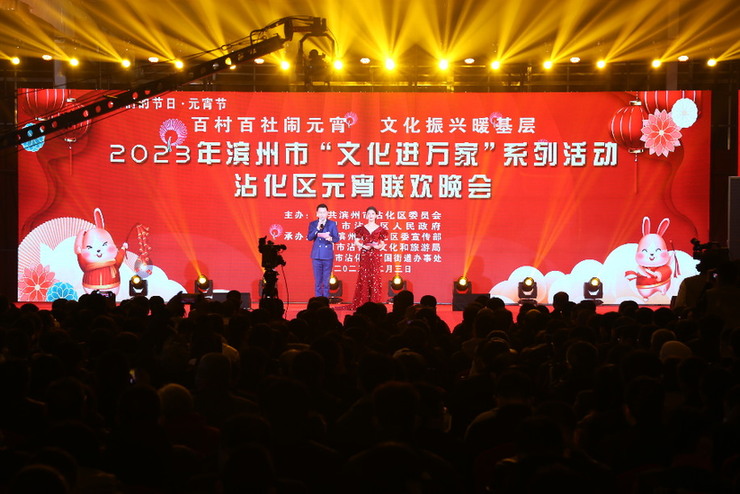 2月3日,“百村百社闹元宵 文化振兴暖基层”2023年滨州市“文化进万家”系列活动沾化区元宵联欢晚会在滨州市沾化区富国街道农业科技创新示范园举办。