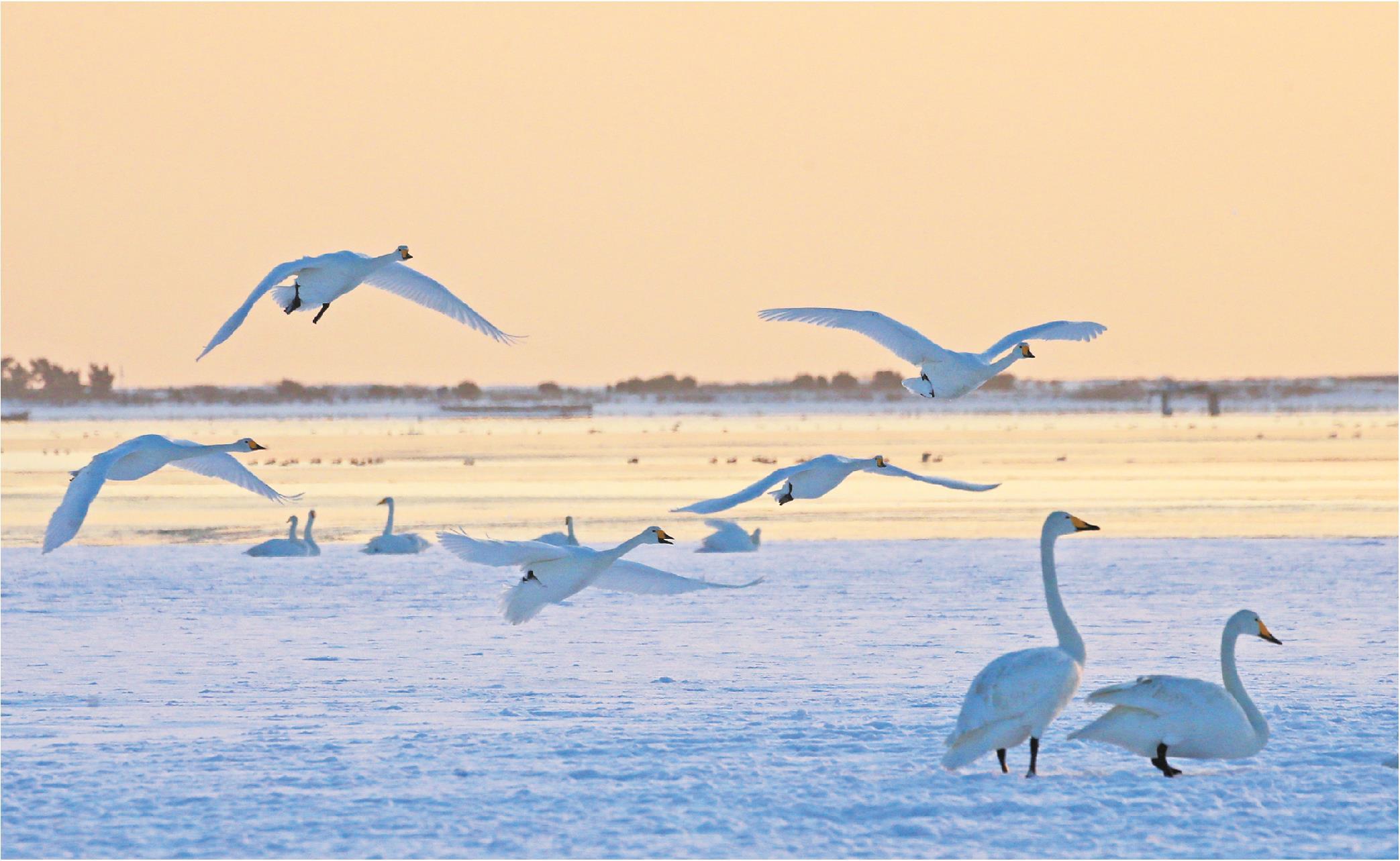 天鹅群栖济南玉清湖沉砂池 宛若翡翠上颗颗白玉