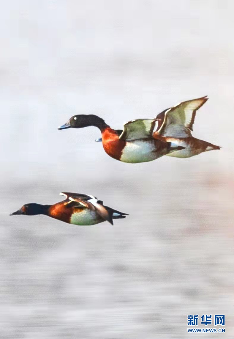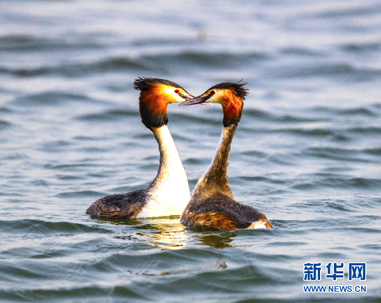 湖面上,鸟儿们成双结对。新华网发(陈昌伦 摄)