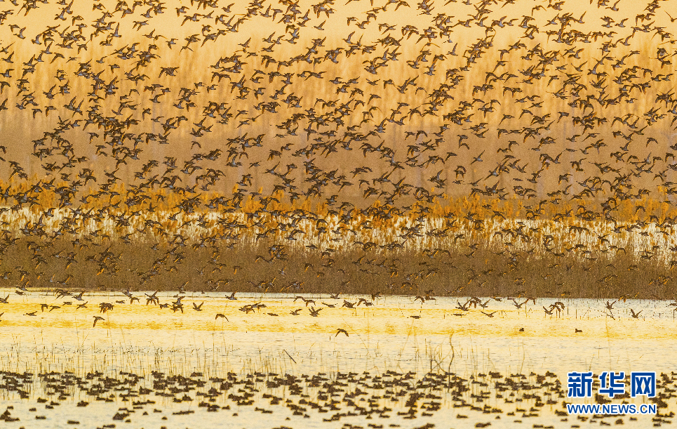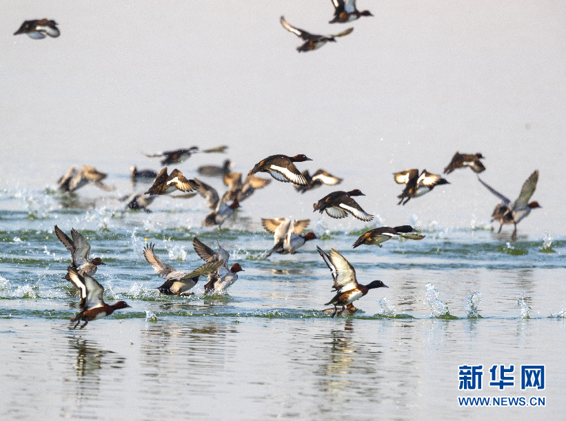 一湖清水,让先知先觉的“鸟儿”迅速集结。新华网发(陈昌伦 摄)