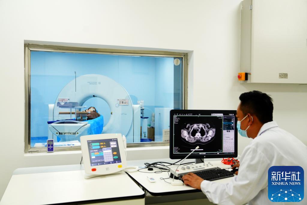 4月19日,在胜利油田中心医院垦利院区,医生为患者做CT检查。新华社记者 郭绪雷 摄