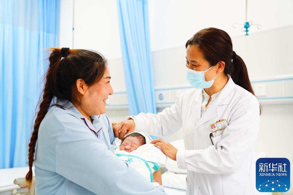 4月19日,在胜利油田中心医院垦利院区,护士向产妇传授新生儿护理常识。新华社记者 郭绪雷 摄
