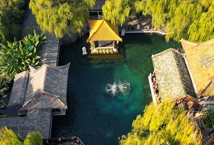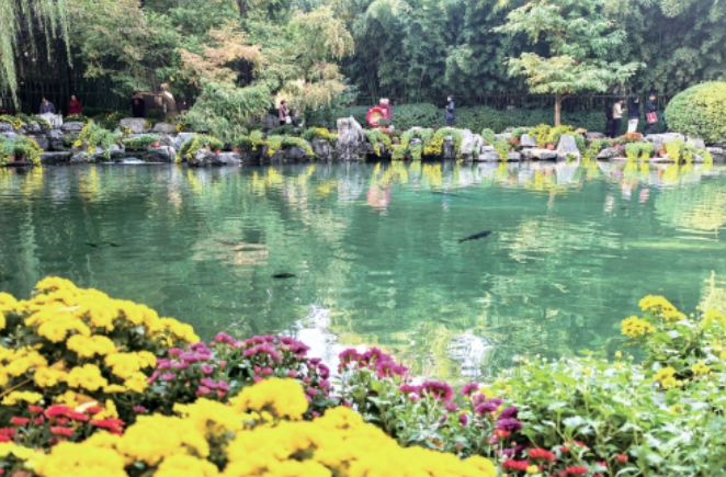 深秋济南大明湖彩叶交织 绘就泉城绝美胜景