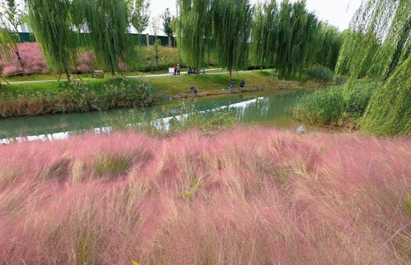 秋日浪漫济南 龙脊河畔粉黛乱子草进入盛花期