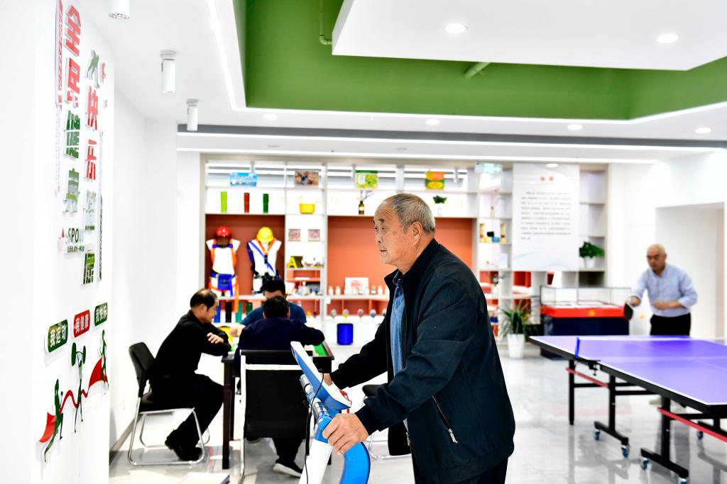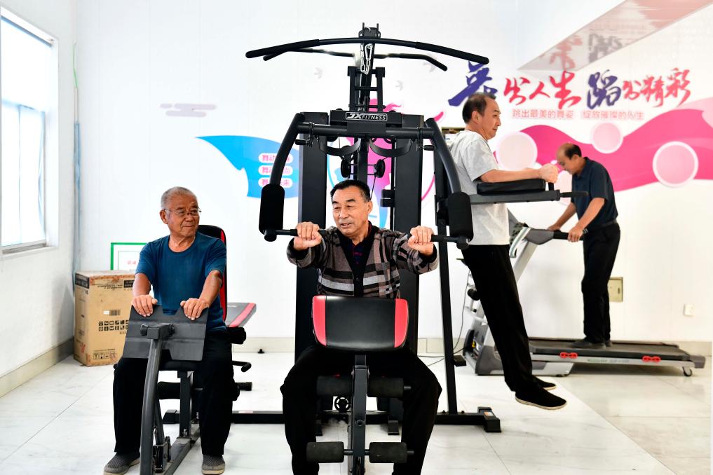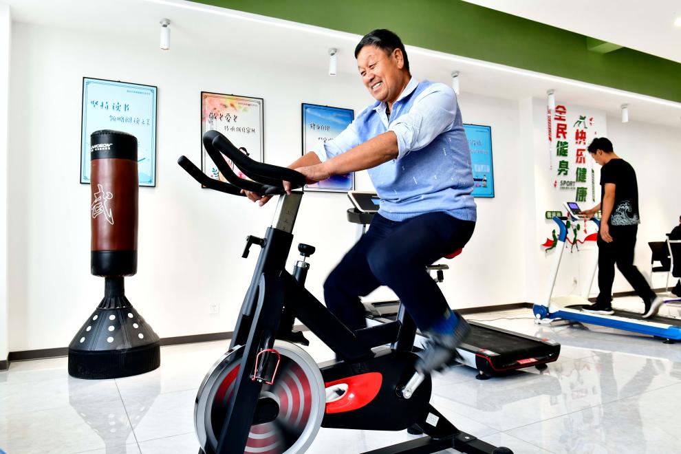 10月12日,在惠民县姜楼镇一处“百姓健身屋”,群众在锻炼身体。新华社记者 郭绪雷 摄