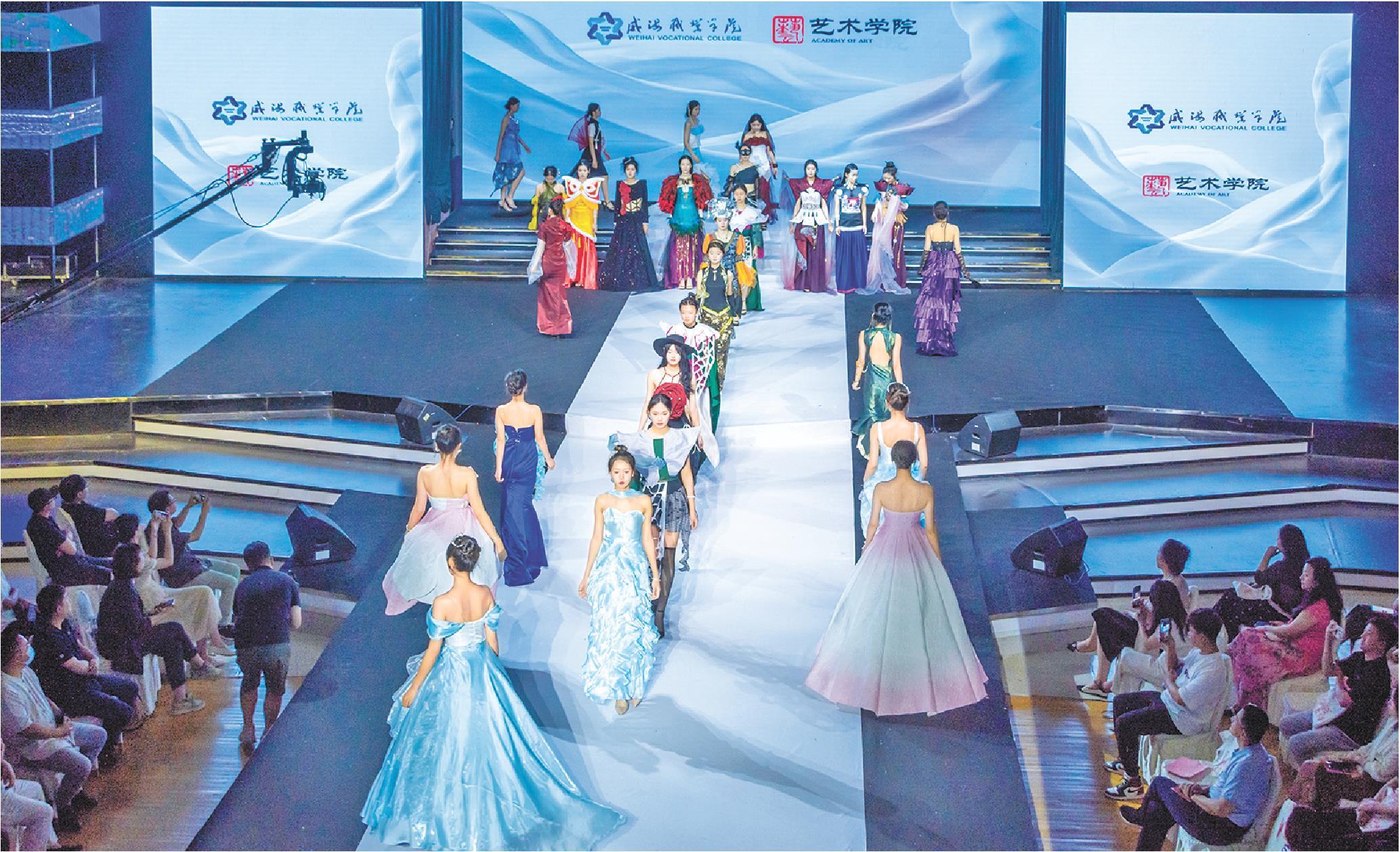 6月24日,威海职业学院艺术学院服装与服饰设计专业2025届毕业生作品展演暨威海职业学院第九届校园模特大赛颁奖典礼在威海职业学院文体活动中心举行。