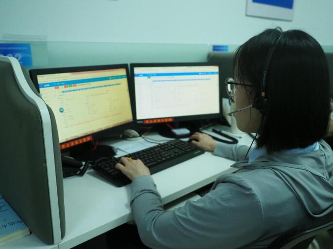 临沂市12345政务服务热线的工作人员正在工作。新华社记者刘铮 摄
