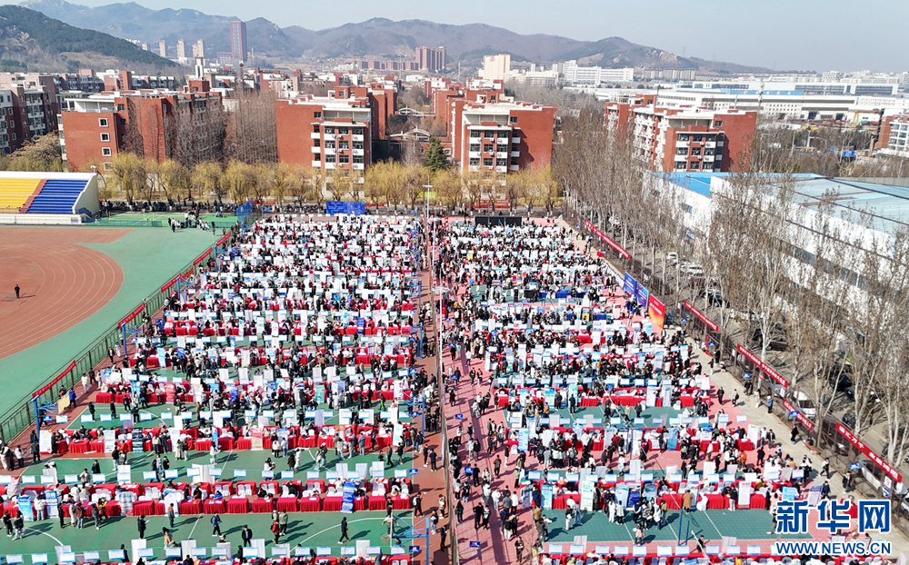 山东科技大学2025年春季校园双选会在青岛西海岸新区举行(无人机照片)。新华网发(张进刚 摄)