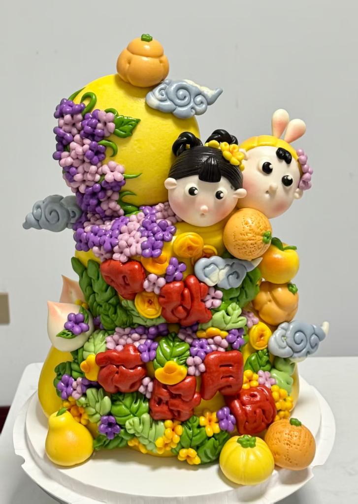 中秋节晚上11点,22岁的山东烟台青年周天聪仍在工作室忙碌。蒸腾的水汽中,形象生动、造型精美的花饽饽逐渐变得饱满莹润。记者注意到,这个花饽饽被制作成双层蛋糕样式,上面塑有卡通嫦娥和兔子形象,将“国庆”和“中秋”元素巧妙融合在一起。