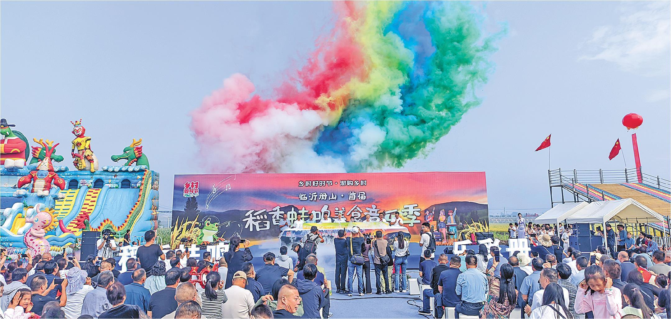 10月1日,山东省临沂市罗庄区册山街道稻蛙基地内稻浪翻涌、蛙声盈耳,“乡村好时节·游购乡村”临沂册山首届稻香蛙鸣美食音乐季活动在此开幕。活动以“稻田为幕、蛙鸣为乐”为主题,构建起沉浸式乡村体验场景。音乐演出环节,知名音乐人及乐队轮番登台演唱《我的祖国》《亲吻草原》《风吹稻花香》等经典与原创曲目;亲子钓蛙区里,孩子们在家长指导下体验捕蛙野趣;“一蛙多吃”美食品鉴区,稻田蛙被烹制成麻辣爆炒蛙、水煮蛙汤等十余道佳肴,食客能够领略独特的饮食文化魅力。