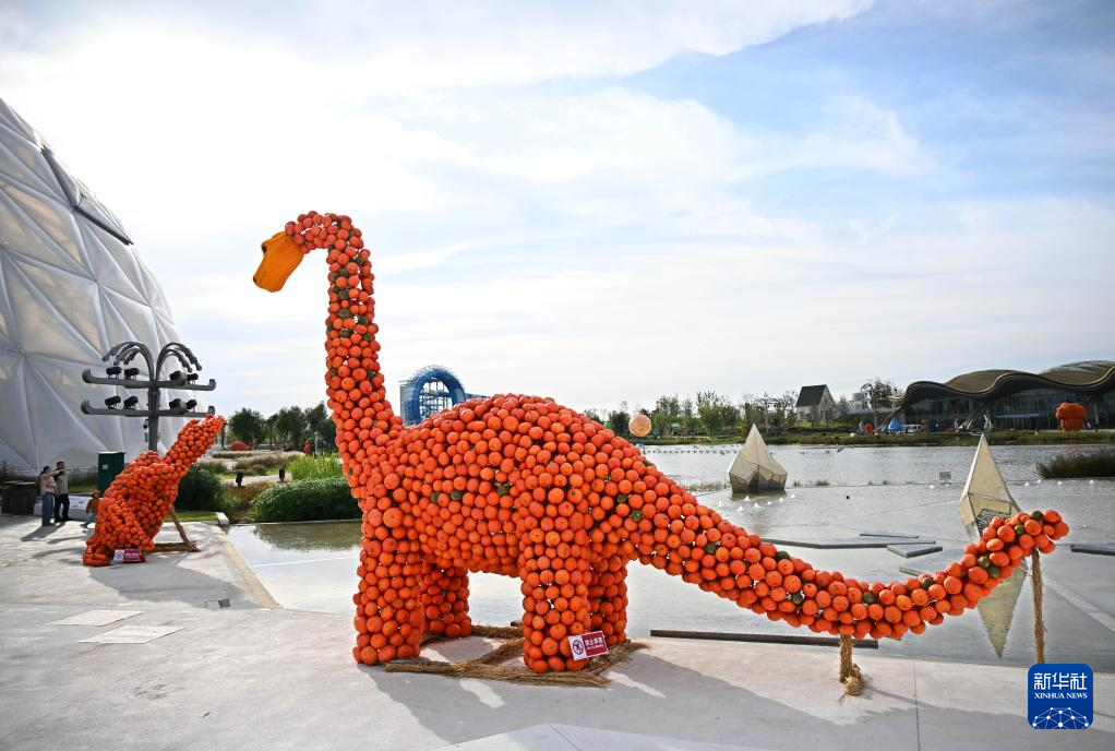 这是景区展示的一处“南瓜恐龙”造型(10月18日摄)。新华社记者 李紫恒 摄