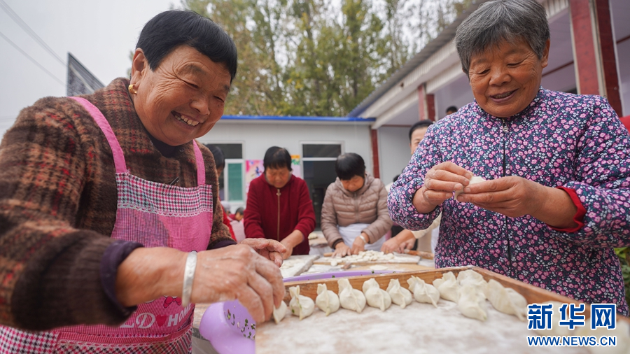 10月28日,山东省邹平市台子镇城关村片区的老人聚在一起包水饺过节日。新华网发(董乃德 摄)