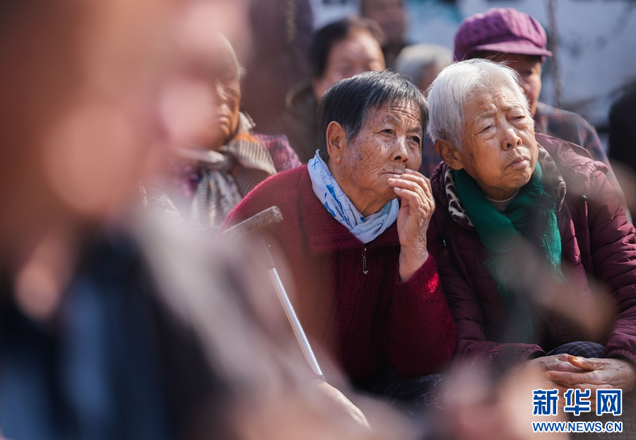 邹平市焦桥镇董家村同乐京剧社在为老人表演。新华网发(董乃德 摄)
