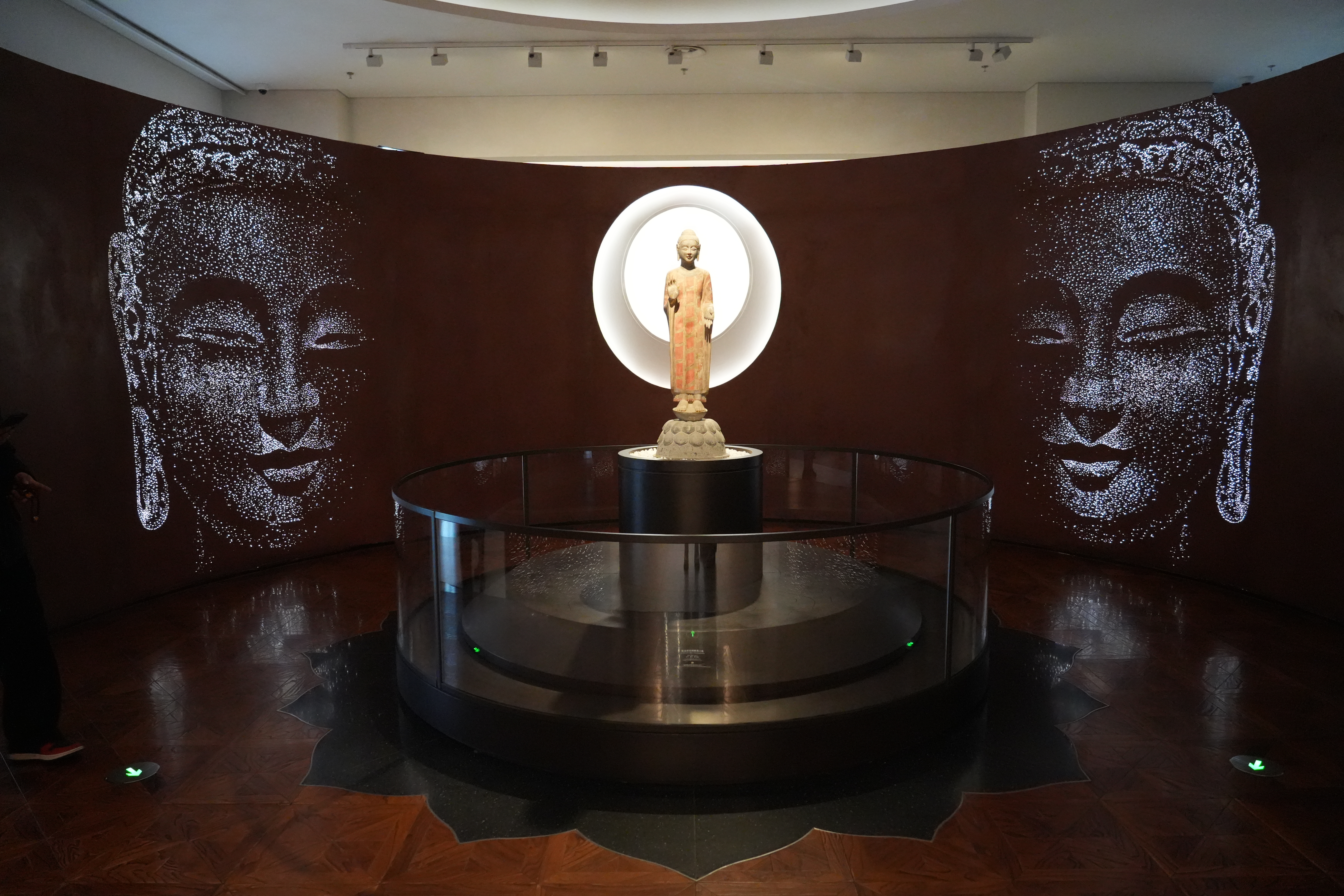 龙兴寺遗址出土佛教造像艺术陈列展厅大胆采用“裸展”方式,让游客360度无死角感受佛像“永恒的微笑”的魅力。该展厅的序厅和尾厅,采用透光水泥,在真实佛像后再现光影佛像的效果,吸引众多游客打卡。除“裸展”外,新馆全部采用透千层抗弯低反展柜玻璃,游客在观赏藏品、打卡拍照时均不会出现人影,参观体验进一步提升。
