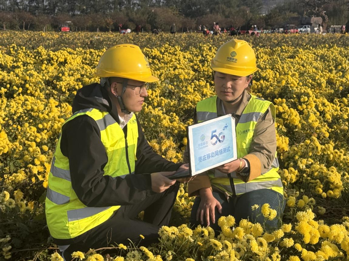 在赏菊季开始前,山东移动枣庄峄城分公司便组建网络保障团队,深入农场开展实地勘察。针对农场开阔区域信号覆盖难点、游客密集区网络承载压力等问题,通过精密测算,优化调整基站参数,增补应急通信设备,完成全农场5G信号的无缝覆盖测试。实现信号强度、网络速率的全方位达标,为后续文旅活动筑牢网络根基。