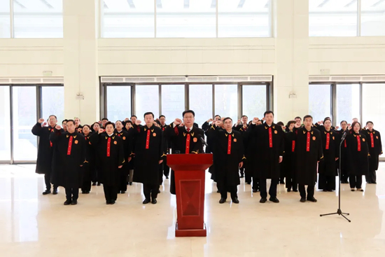 12月4日,在第十二个国家宪法日到来之际,济宁市中级人民法院组织全体员额法官举行了庄严的宪法宣誓仪式。