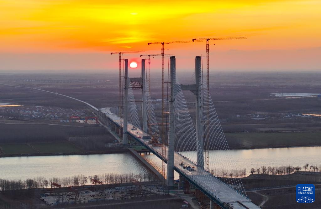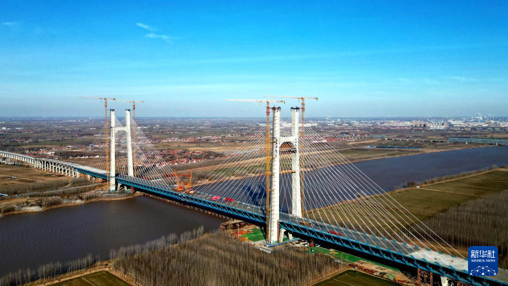 12月31日,津潍高铁东营黄河公铁大桥顺利合龙,为后续铺轨通车奠定基础。据了解,该桥是津潍高铁全线的重点控制性工程,全长2230.4米,由主桥、副桥和引桥三部分组成,下层为双线高速铁路,上层为双向六车道一级公路。津潍高铁是国家“八纵八横”高铁网中京沪通道和沿海通道的重要组成部分,也是京津冀协同发展、连接山东半岛和长三角地区的重要交通干线。新华社发(周广学摄)