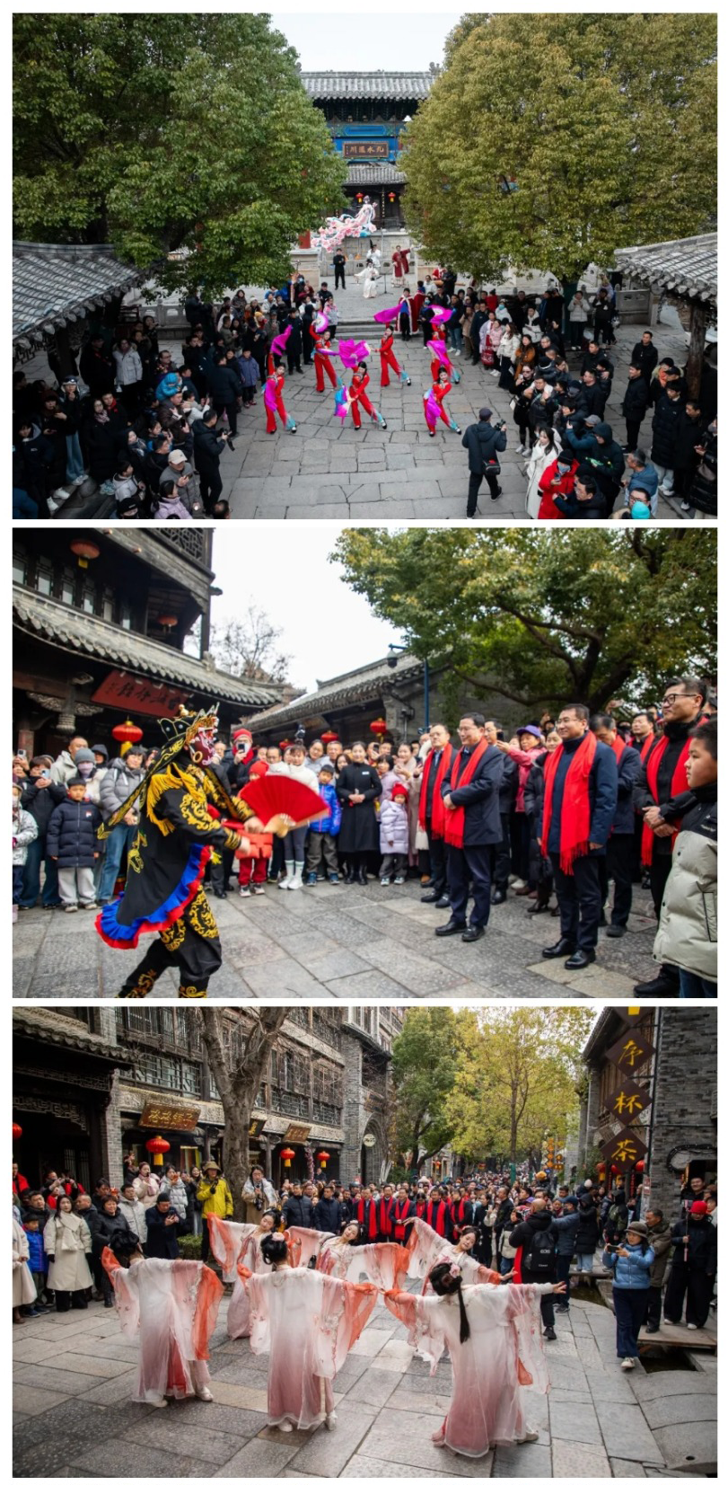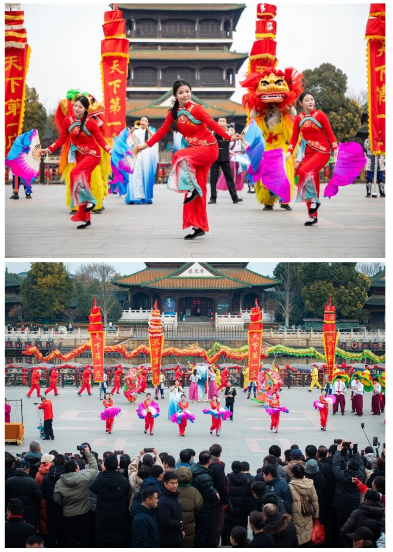 仪式结束后,精彩纷呈的民俗演艺将气氛推向高潮。《运河情》流淌悠悠古韵,《变脸》展现非遗绝活,《映月》舞出清雅意境,《菱歌乐舞》跃动水乡欢愉,更有《盛世欢歌·福运新春》非遗民俗大联欢压轴献演,鼓乐喧腾、歌舞交融,呈现出一场传统与现代交织、视觉与情怀共鸣的文化盛宴。