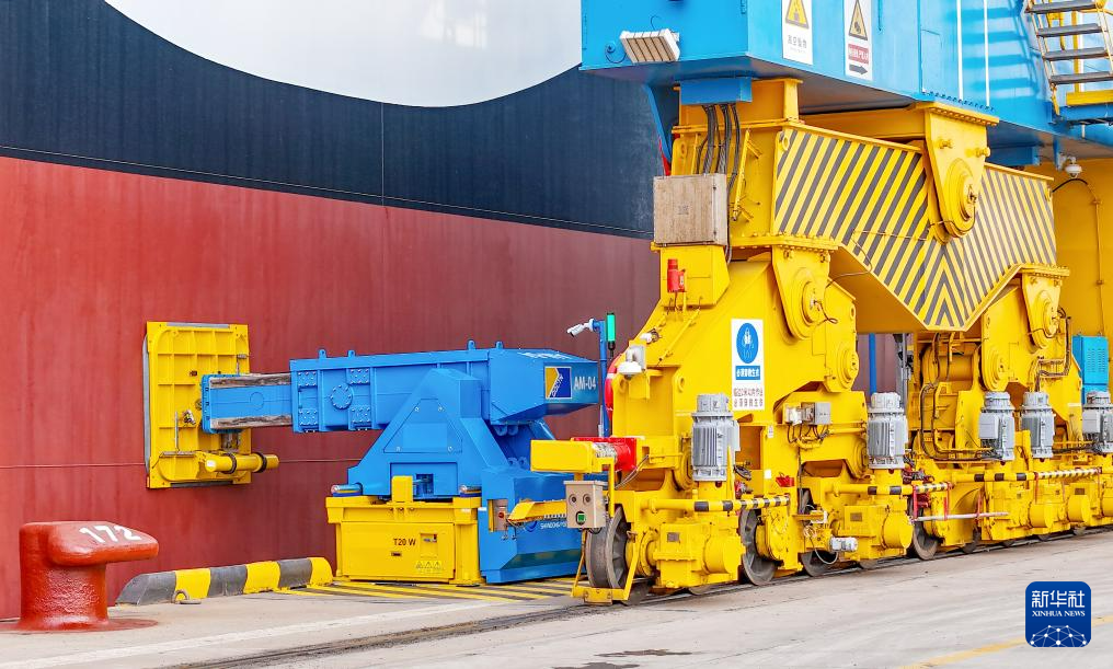 2026年1月1日,在山东港口青岛港,我国首套真空式自动系泊系统在进行系泊作业(无人机照片)。