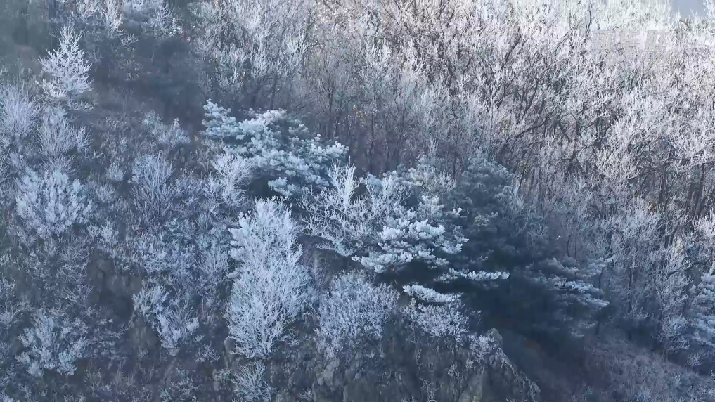 连日来,受持续低温影响,山东省五莲县大青山风景区迎来雾凇景观。松针凝霜成玉,枝丫缀满银花,将冬日的磅礴诗意晕染得淋漓尽致。
