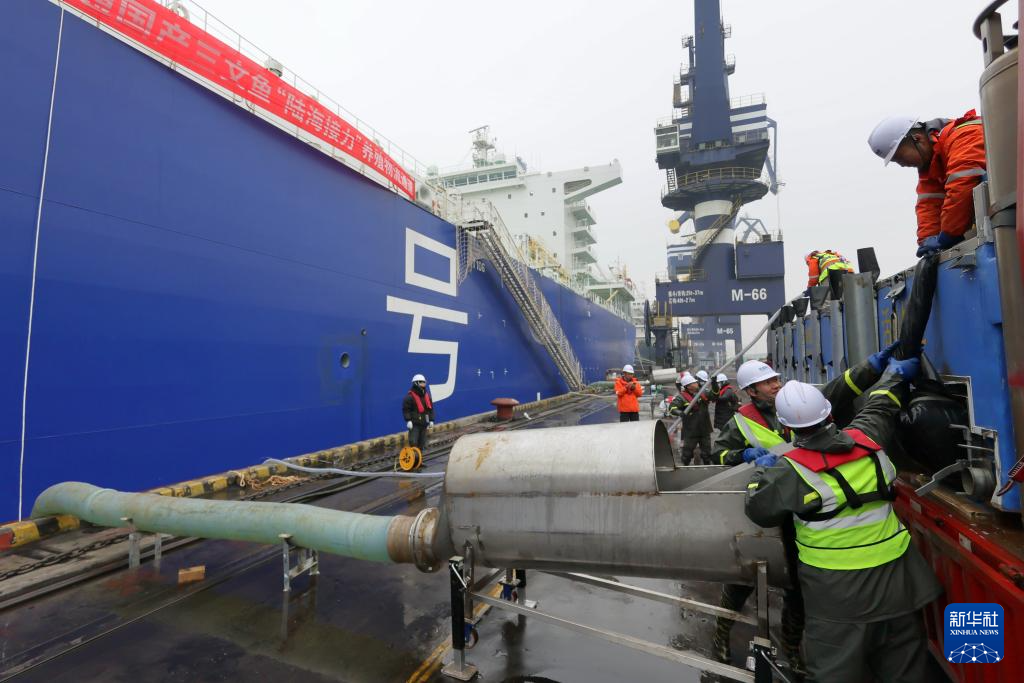 1月16日,16万尾由烟台本地企业培育的三文鱼鱼苗在山东港口烟台港装入10万吨级养殖工船“苏海1号”。随后该船将开赴适宜海域开展游弋式养殖。这是山东省港口集团首单三文鱼养殖工船装舱业务,标志着国产三文鱼“陆海接力”养殖物流通道进一步拓宽。新华社发(唐克摄)