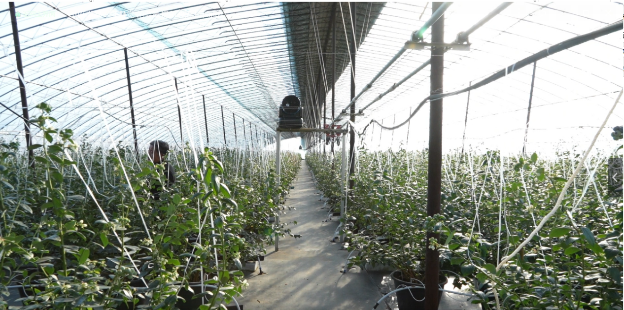 不仅蓝莓品种焕新,种植技术也在持续升级。当地告别了传统土耕模式,同步采用纯基质无土栽培、盆栽种植等新型栽培管理技术,实现了从土壤到基质的“搬家”,使得蓝莓苗更壮,开花结果时间进一步提前,品质也更好。