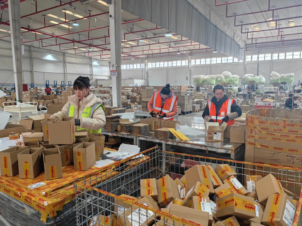 位于山东烟台综合保税区西区的日韩消费品跨境电商中心里,来自世界多地的商品在此汇聚。工作人员正忙着将货物分拣、打包,传送带迅速将包装好的快递盒送到仓外等待的快递运输车上。“现在每天出库一万五千单,每天3辆快递物流车过来拉货。”日韩消费品跨境电商中心格派菜鸟中心仓经理殷豪豪说。