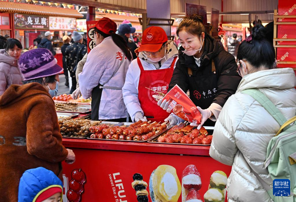2月17日,顾客在年货市集上购买糖球。新华社记者 李紫恒 摄