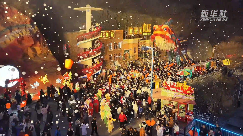 夜幕降临,淄博市博山区红叶柿岩景区的鳌鱼巡游登场。长21米、高7米的巨型鳌鱼彩灯金鳞闪耀,承载着“独占鳌头、步步高升”的美好寓意,吸引大量游客。