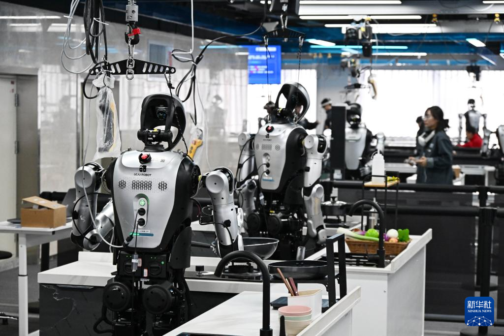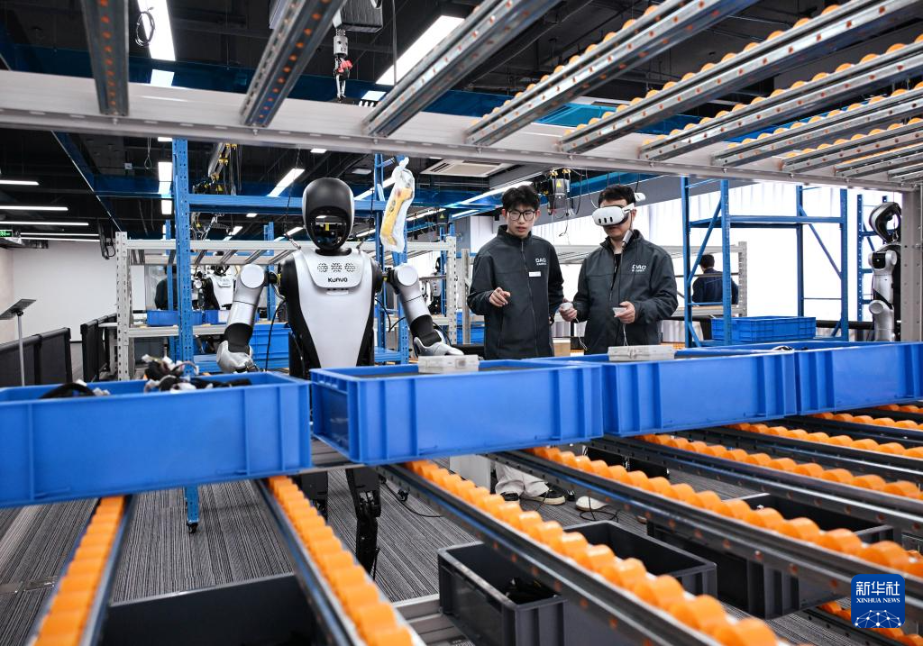 这是在青岛市人形机器人数据采集训练场拍摄的工作场景(3月23日摄)。新华社记者 李紫恒 摄