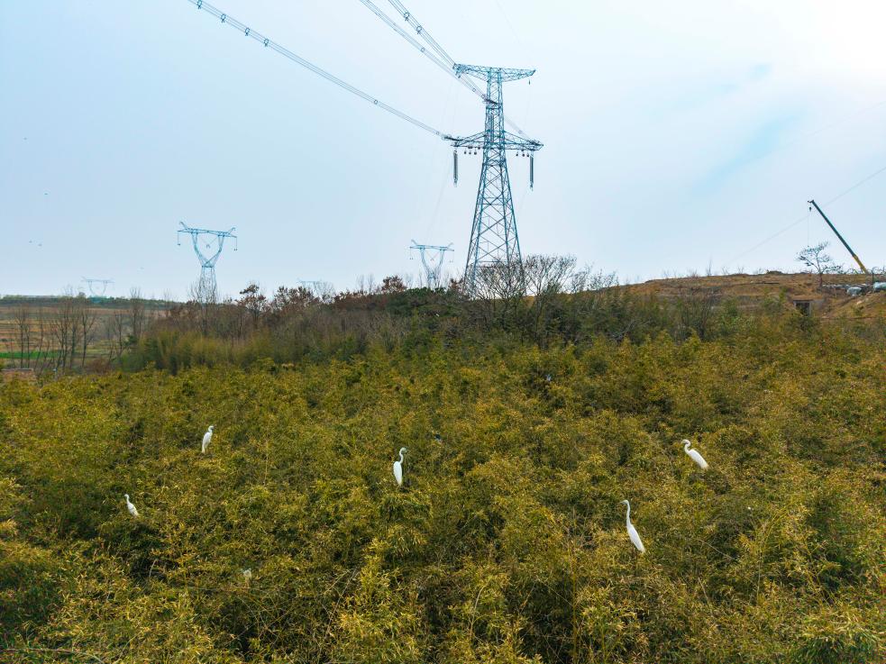 新华社济南4月1日电(记者贾云鹏)4月1日国际爱鸟日来临之际,山东省日照市岚山区黄墩镇浔河岸边,高大的杨树间,陆续归来的白鹭正衔枝筑巢。百米之外,国网山东省电力公司烟威1000千伏特高压线路工程的施工现场,最后一段导地线展放完毕。当白鹭结队掠过杆塔上空,这片工地已恢复宁静,只留下崭新的铁塔静静矗立,与鸟影相映成趣。