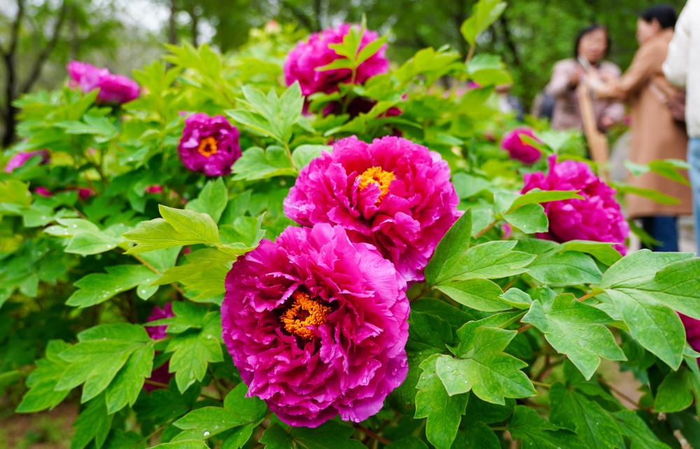 近日,在山东省济南市泉城公园内大面积种植的牡丹花进入盛开期,吸引了众多市民前来观赏。
