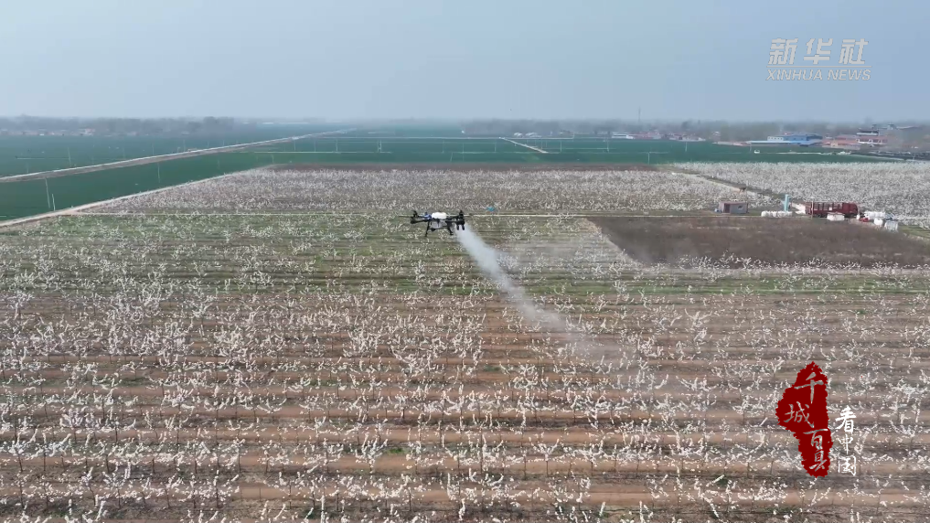 春风送暖,梨花盛开。在山东省聊城市冠县范寨镇酥梨示范园千亩酥梨基地,数台无人机在梨园上空有序穿梭,通过智能规划航线、精准控量施粉,将花粉营养液均匀喷洒在梨花上,实现全园均匀覆盖,既替代了以往果农举杆点花的繁重劳作,破解了用工紧缺难题,又牢牢抓住了授粉黄金期。