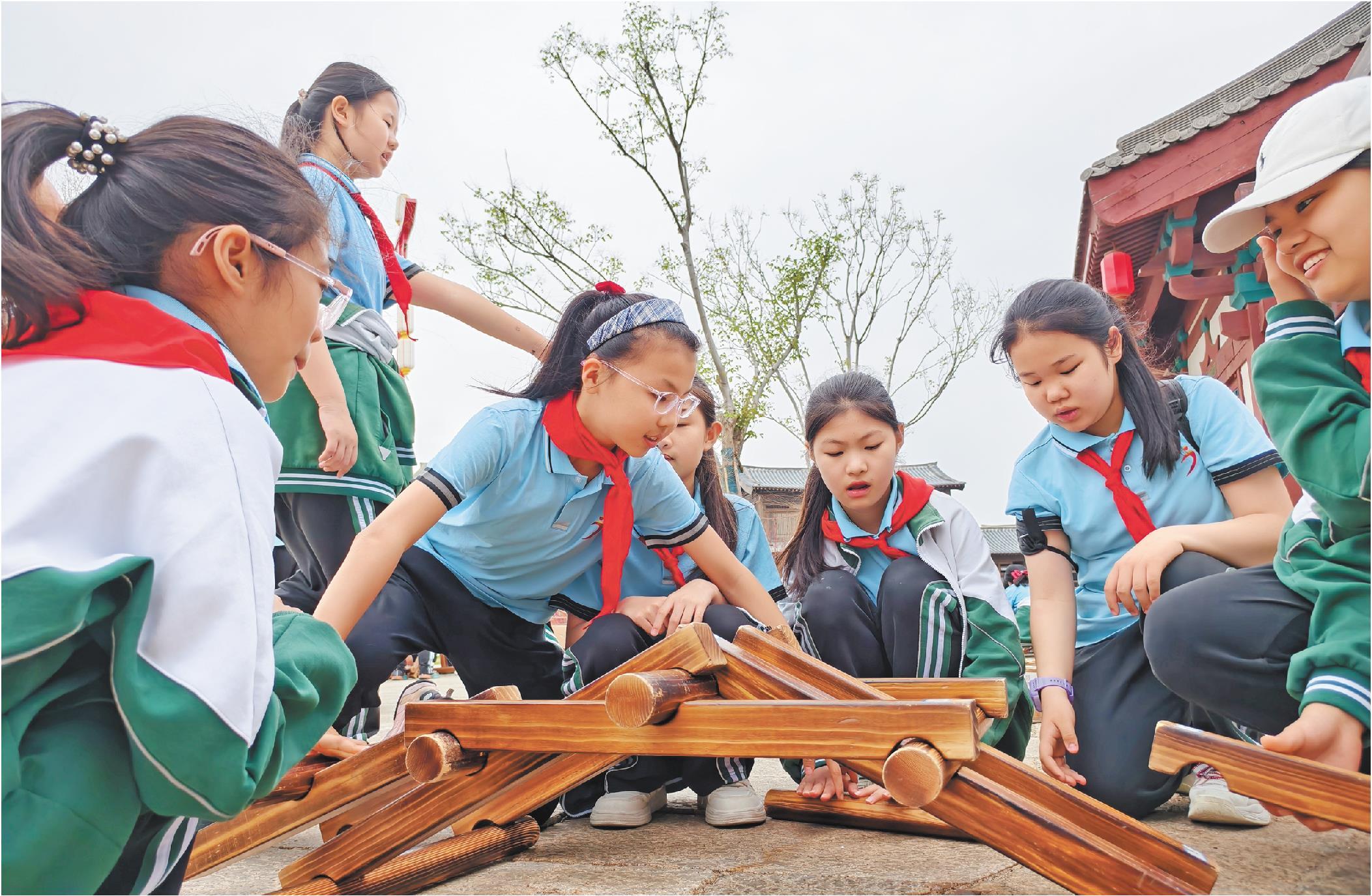 4月16日,德州市中小学春假首日,在乐陵影视城,学生们进行丰富多彩的实践活动。
