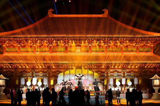 游客在山东省德州市乐陵影视城观看演出。新华社发