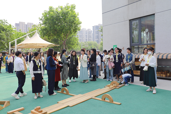 在自然开放的小院里,孩子们对自己玩得怎么样、生活得怎么样有着丰富的体验、评价与反思。运动类游戏中,孩子们大胆挑战斜坡攀爬、灵活完成前滚翻,在一次次尝试中判断自己的动作是否协调、挑战是否成功;结构类游戏中,孩子们搭建出螺母小车、坦克储藏室、共享汽车,在反思调整中提升协作沟通与问题解决能力;探索类游戏中,孩子们在沙池筑渠引水、探究水流规律,在实际操作和亲身体验中不断调整对环境、对自己、对同伴的评价……真实生动的游戏自评场景,已然成为百合幼教省级基础教育教学成果鲜活的实践场域,也让参访者频频驻足,对成果的育人实效给予了高度认可。