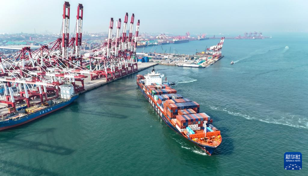 4月26日,山东港口青岛港开通西非新集装箱航线。该航线共投入13条船舶,实行周班常态化运行。目前,青岛港非洲集装箱航线已达11条,覆盖东非、西非、北非等市场,进一步拓宽了中国和非洲之间的海上物流通道。新华社发(张进刚 摄)