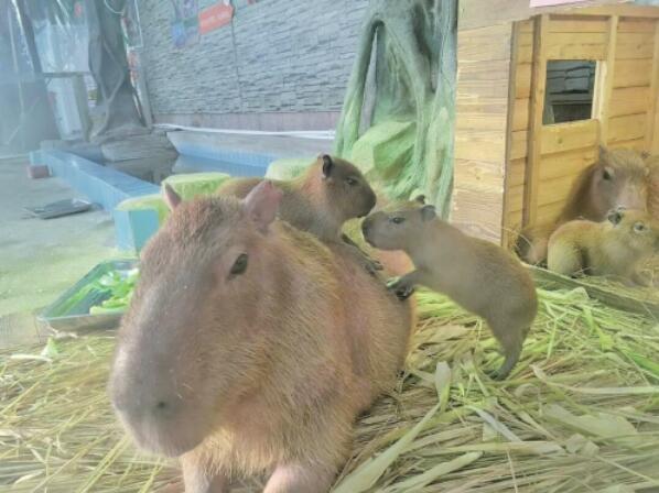 济南动物园卡皮巴拉家族添丁 4只萌宝周末亮相