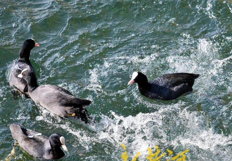 成群野生鸟落户济南鹊山水库沉沙池越冬