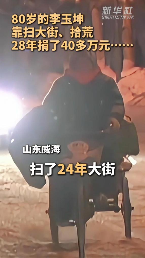 80岁的李玉坤,28年里靠扫大街、拾荒捐40多万元